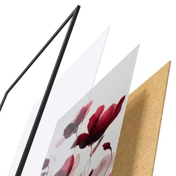 Le poster se compose d'un cadre, d'un plexiglas, d'une image imprimée et d'un support en aggloméré. Le poster peut être immédiatement accroché au mur grâce aux fixations au dos.