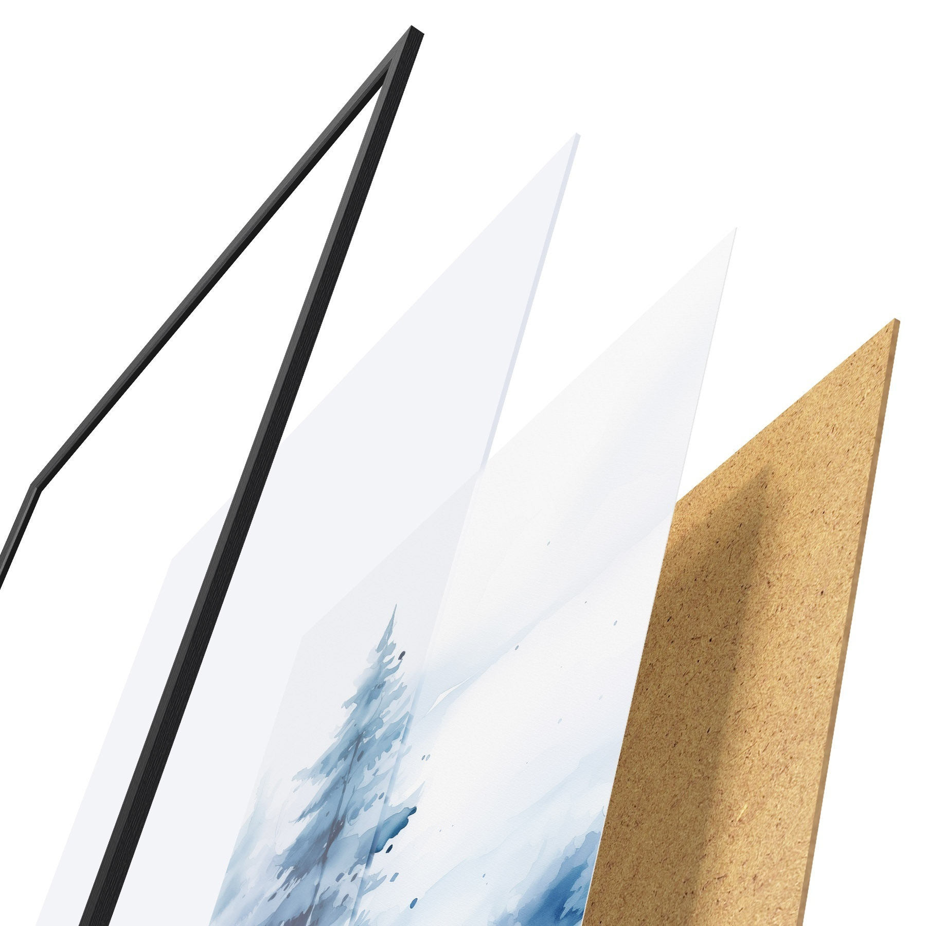 Le poster se compose d'un cadre, d'un plexiglas, d'une image imprimée et d'un support en aggloméré. Le poster peut être immédiatement accroché au mur grâce aux fixations au dos.