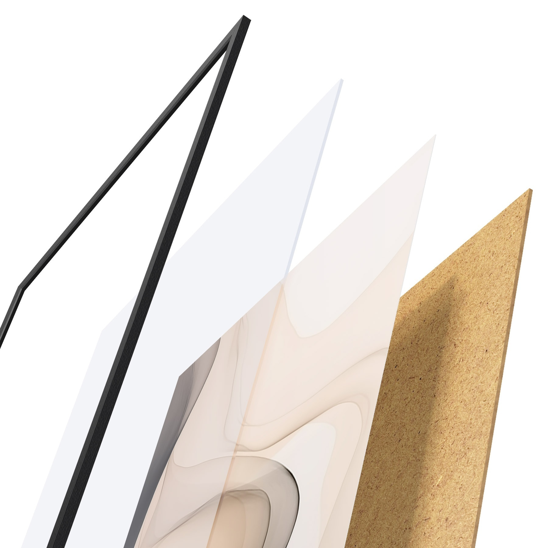 Le poster se compose d'un cadre, d'un plexiglas, d'une image imprimée et d'un support en aggloméré. Le poster peut être immédiatement accroché au mur grâce aux fixations au dos.
