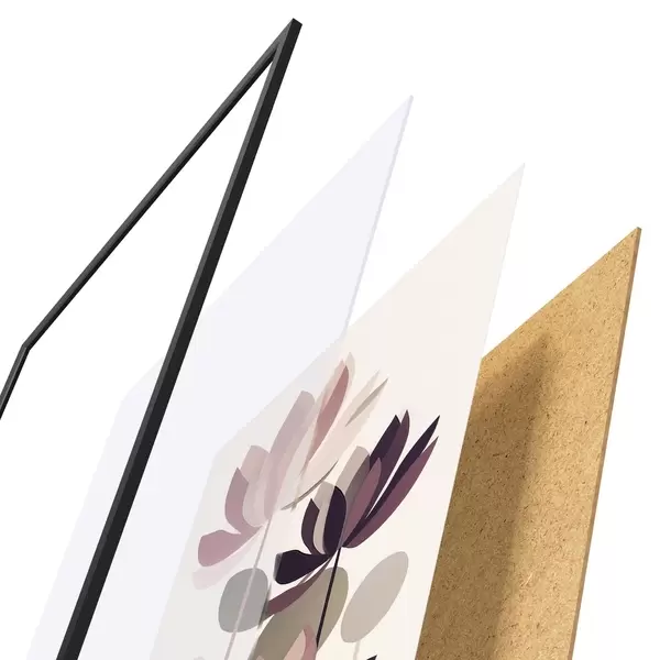 Le poster se compose d'un cadre, d'un plexiglas, d'une image imprimée et d'un support en aggloméré. Le poster peut être immédiatement accroché au mur grâce aux fixations au dos.