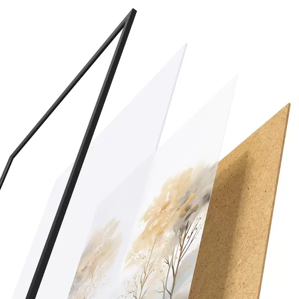 Le poster se compose d'un cadre, d'un plexiglas, d'une image imprimée et d'un support en aggloméré. Le poster peut être immédiatement accroché au mur grâce aux fixations au dos.