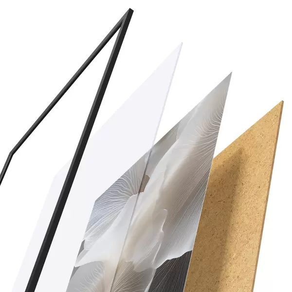 Le poster se compose d'un cadre, d'un plexiglas, d'une image imprimée et d'un support en aggloméré. Le poster peut être immédiatement accroché au mur grâce aux fixations au dos.
