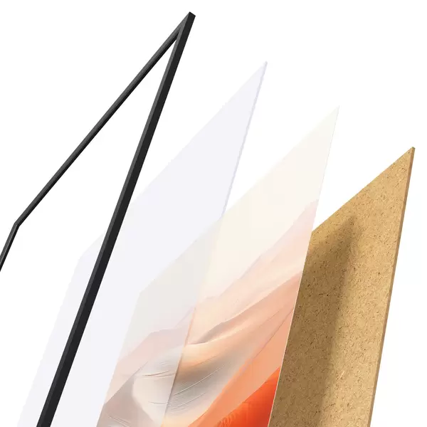 Le poster se compose d'un cadre, d'un plexiglas, d'une image imprimée et d'un support en aggloméré. Le poster peut être immédiatement accroché au mur grâce aux fixations au dos.