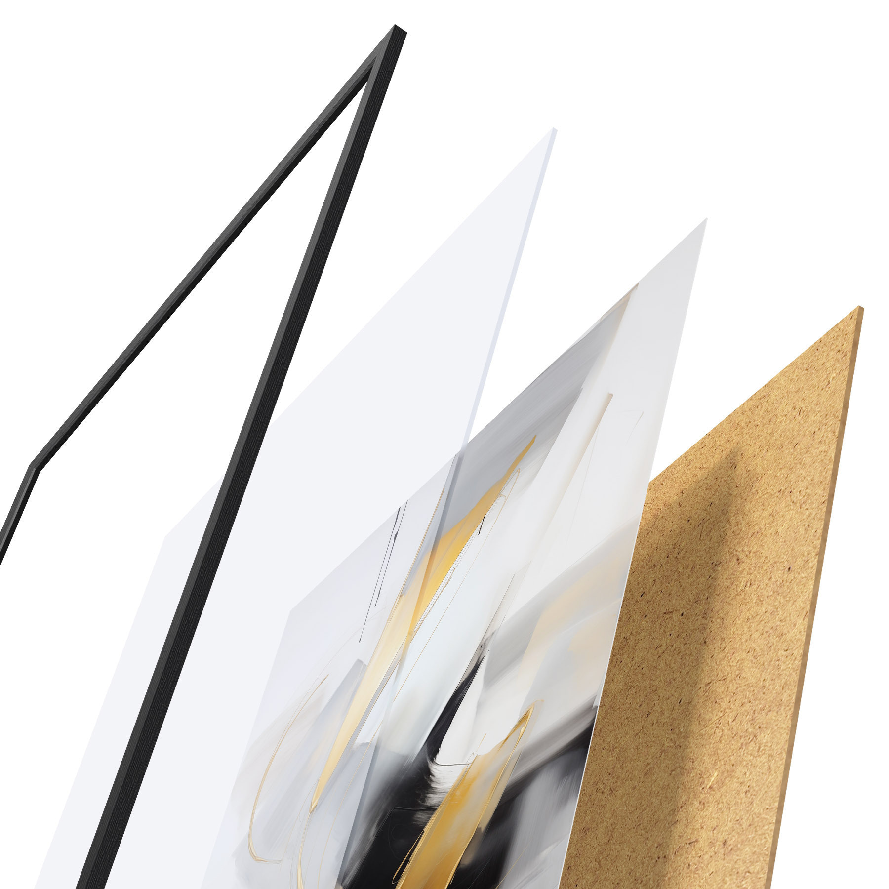 Le poster se compose d'un cadre, d'un plexiglas, d'une image imprimée et d'un support en aggloméré. Le poster peut être immédiatement accroché au mur grâce aux fixations au dos.