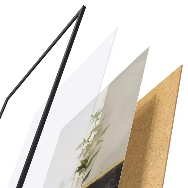 Le poster se compose d'un cadre, d'un plexiglas, d'une image imprimée et d'un support en aggloméré. Le poster peut être immédiatement accroché au mur grâce aux fixations au dos.