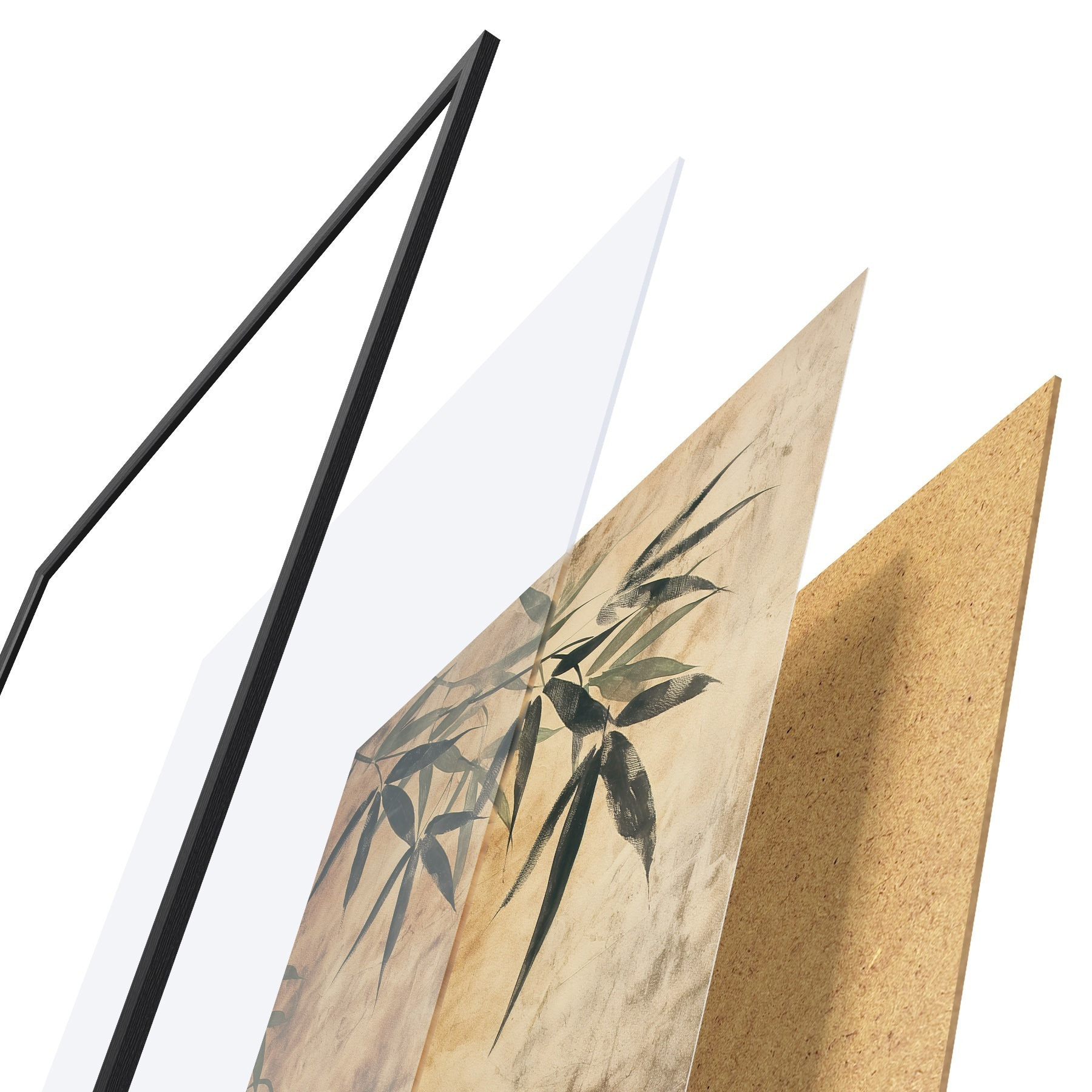 Le poster se compose d'un cadre, d'un plexiglas, d'une image imprimée et d'un support en aggloméré. Le poster peut être immédiatement accroché au mur grâce aux fixations au dos.