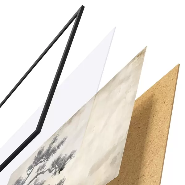 Le poster se compose d'un cadre, d'un plexiglas, d'une image imprimée et d'un support en aggloméré. Le poster peut être immédiatement accroché au mur grâce aux fixations au dos.