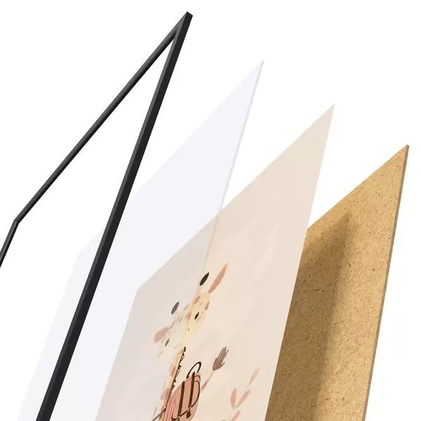 Le poster se compose d'un cadre, d'un plexiglas, d'une image imprimée et d'un support en aggloméré. Le poster peut être immédiatement accroché au mur grâce aux fixations au dos.