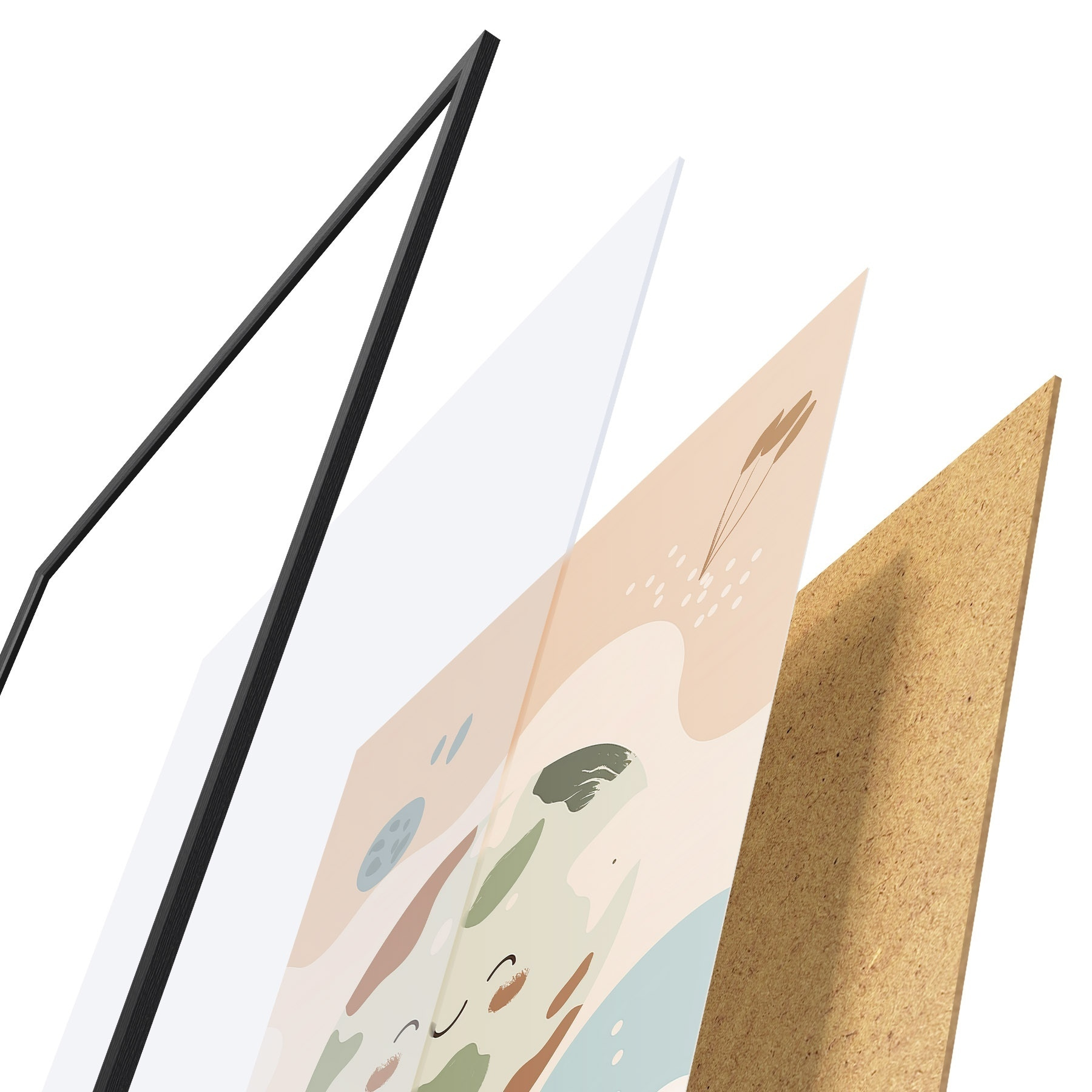 Le poster se compose d'un cadre, d'un plexiglas, d'une image imprimée et d'un support en aggloméré. Le poster peut être immédiatement accroché au mur grâce aux fixations au dos.