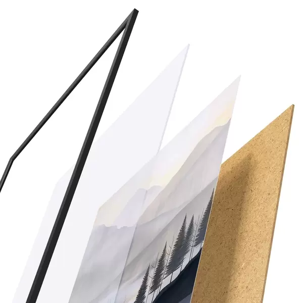 Le poster se compose d'un cadre, d'un plexiglas, d'une image imprimée et d'un support en aggloméré. Le poster peut être immédiatement accroché au mur grâce aux fixations au dos.