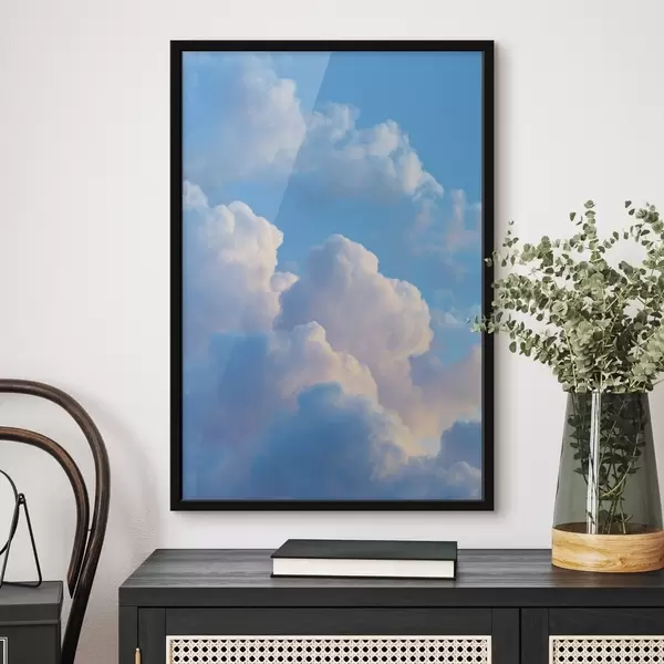 Affiche Des nuages volumineux dans une palette de couleurs douces bleues et roses, dans un style graphique numérique photoréaliste. Non f47088