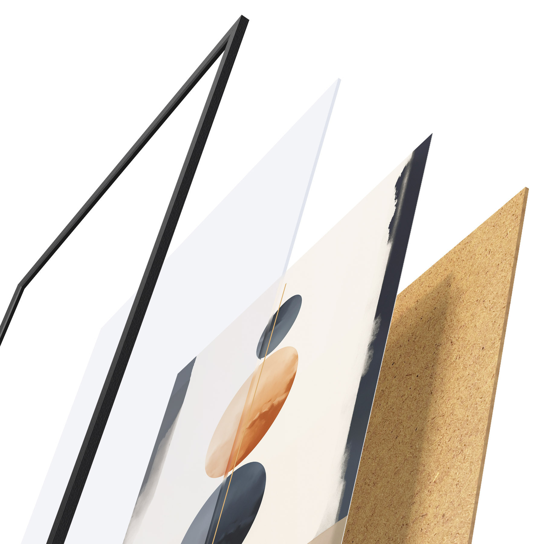 Le poster se compose d'un cadre, d'un plexiglas, d'une image imprimée et d'un support en aggloméré. Le poster peut être immédiatement accroché au mur grâce aux fixations au dos.