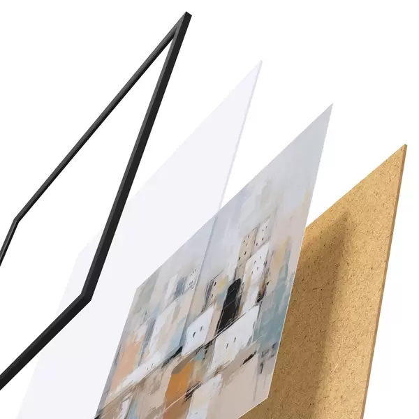 Le poster se compose d'un cadre, d'un plexiglas, d'une image imprimée et d'un support en aggloméré. Le poster peut être immédiatement accroché au mur grâce aux fixations au dos.
