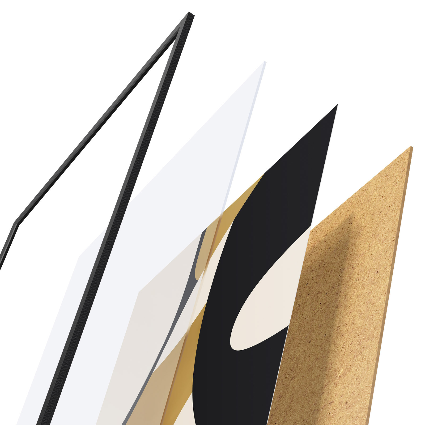 Le poster se compose d'un cadre, d'un plexiglas, d'une image imprimée et d'un support en aggloméré. Le poster peut être immédiatement accroché au mur grâce aux fixations au dos.