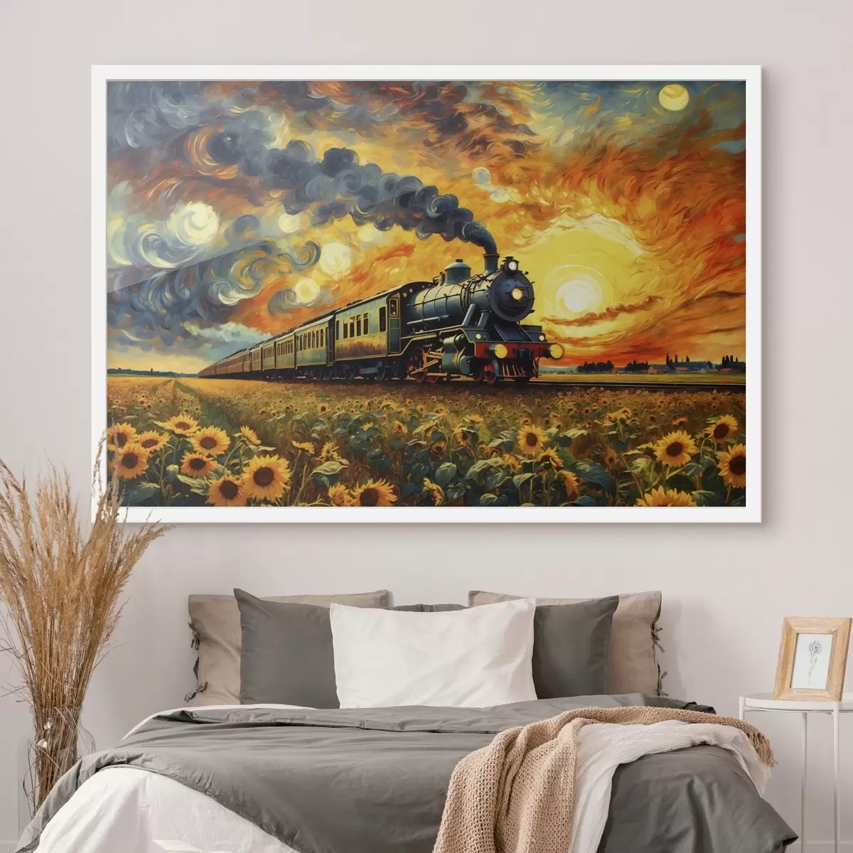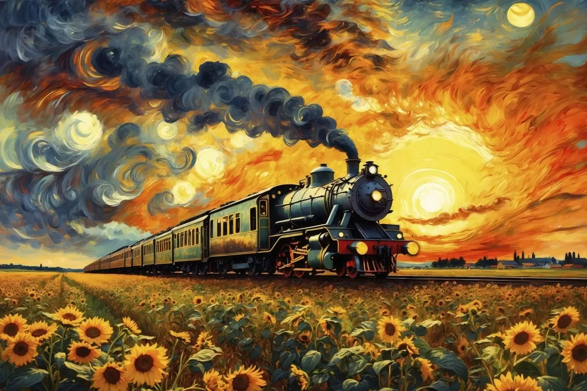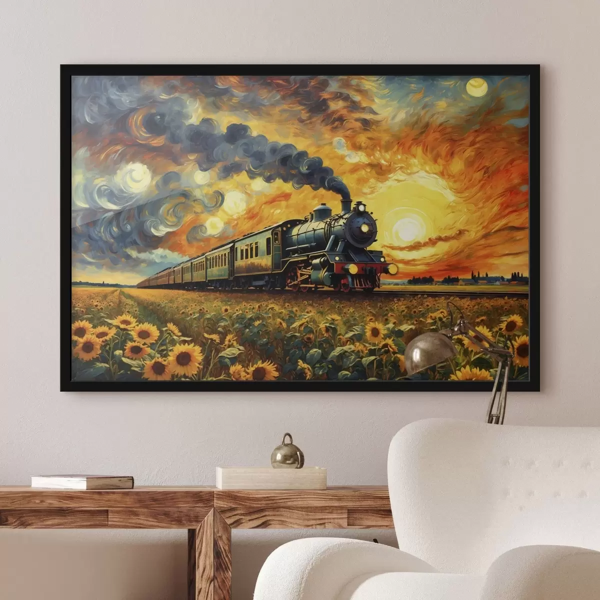 Affiche Train à vapeur dans un champ avec un ciel spectaculaire Non f47257