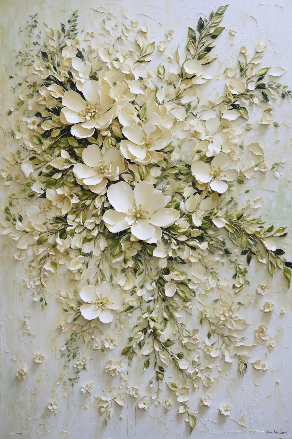 Affiche Grande composition de fleurs et de feuilles crème Non f47267