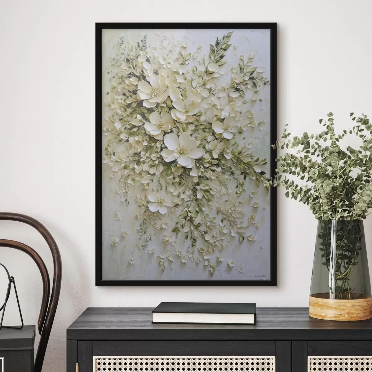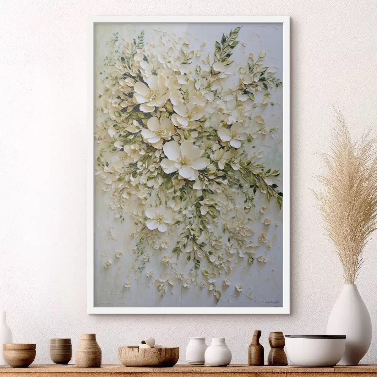 Affiche Grande composition de fleurs et de feuilles crème f47267