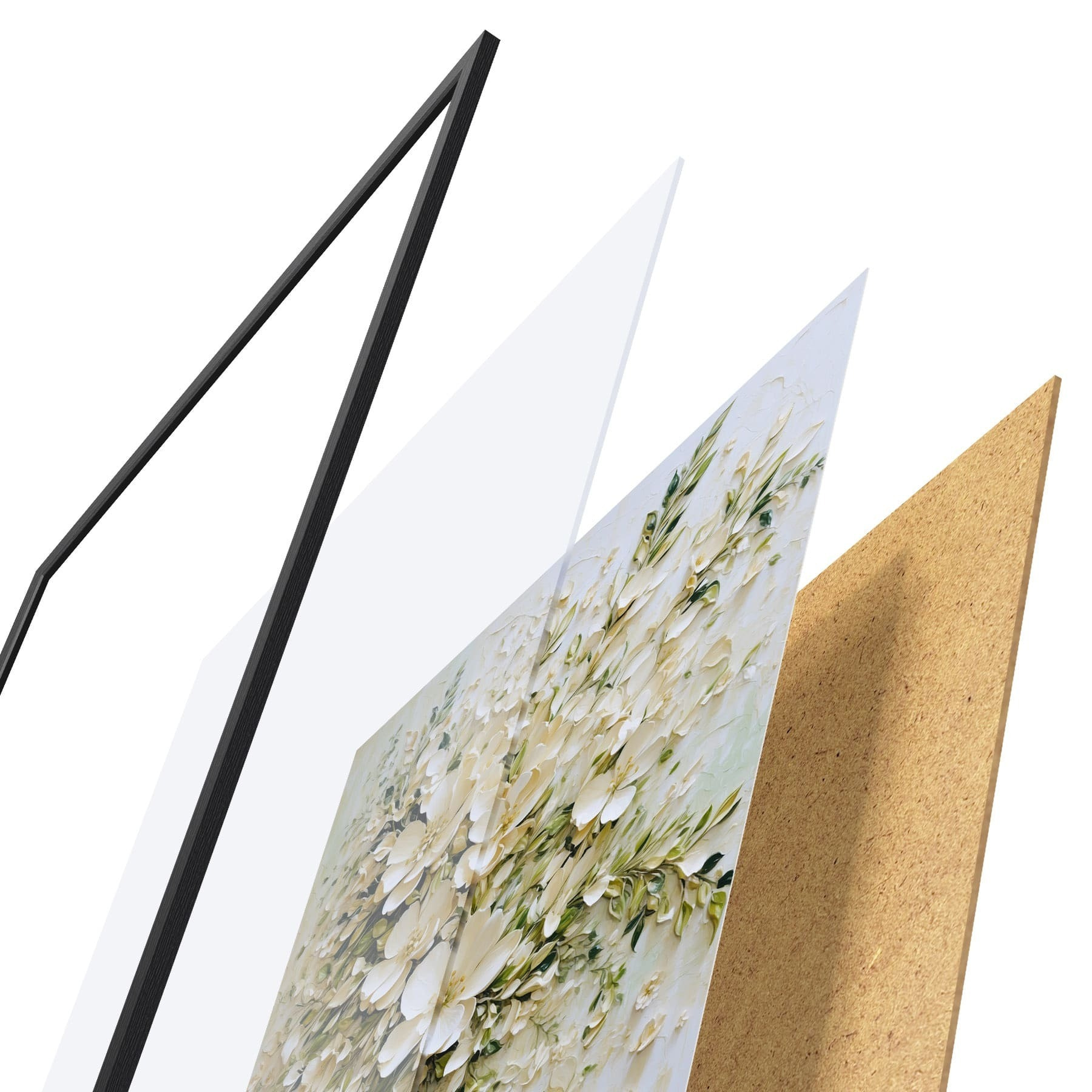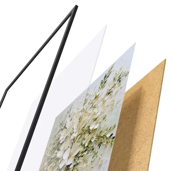 Le poster se compose d'un cadre, d'un plexiglas, d'une image imprimée et d'un support en aggloméré. Le poster peut être immédiatement accroché au mur grâce aux fixations au dos.