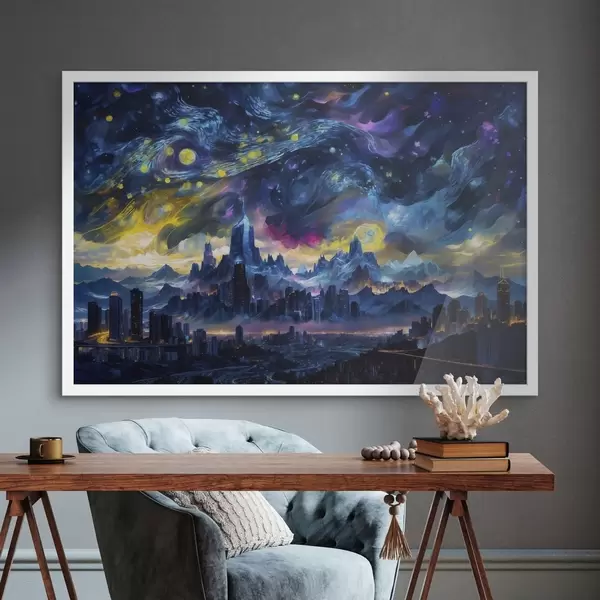 Affiche Une ville fantastique sous un ciel nocturne lumineux f47288