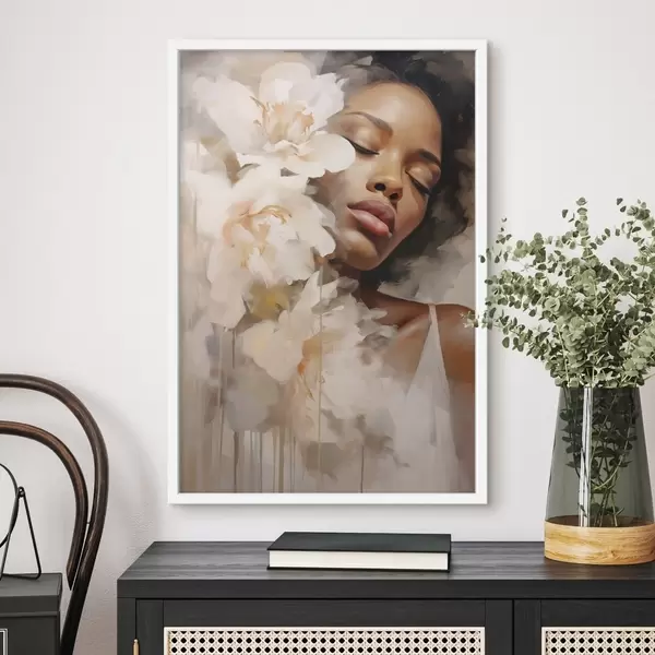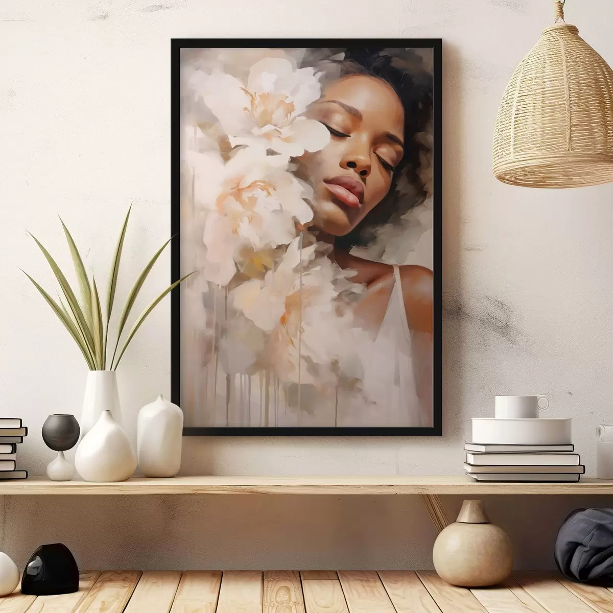 Affiche Portrait de femme à côté de grandes fleurs Non f47307