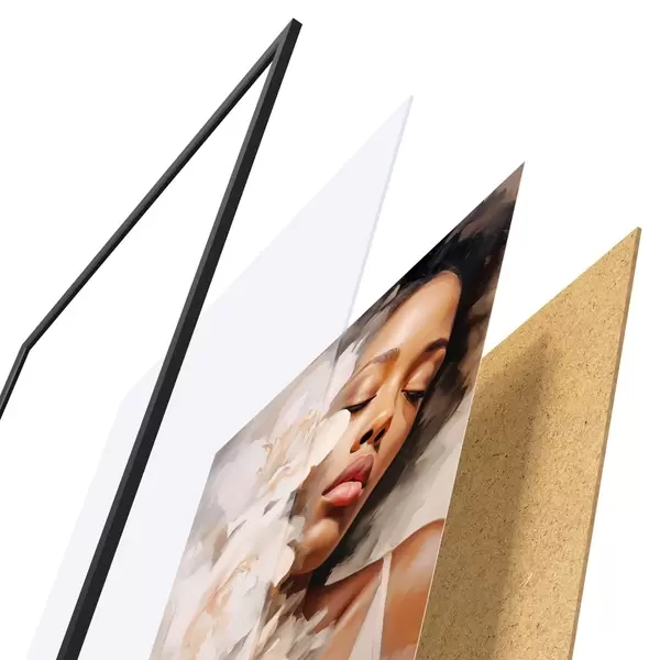 Le poster se compose d'un cadre, d'un plexiglas, d'une image imprimée et d'un support en aggloméré. Le poster peut être immédiatement accroché au mur grâce aux fixations au dos.