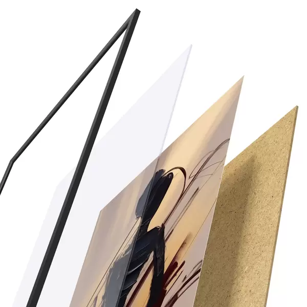 Le poster se compose d'un cadre, d'un plexiglas, d'une image imprimée et d'un support en aggloméré. Le poster peut être immédiatement accroché au mur grâce aux fixations au dos.
