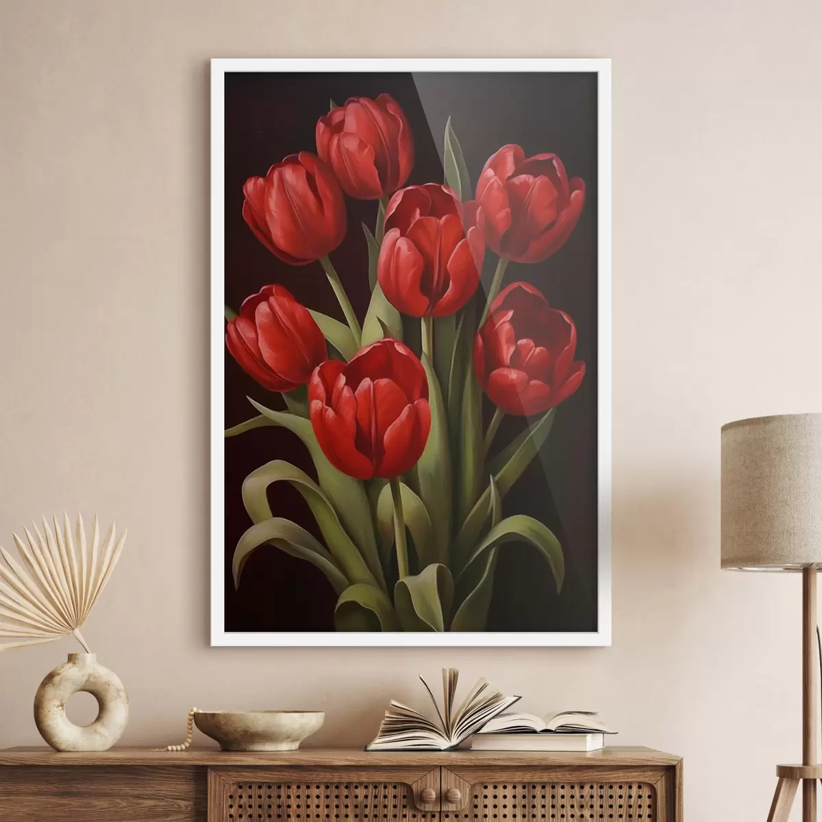 Le poster se compose d'un cadre, d'un plexiglas, d'une image imprimée et d'un support en aggloméré. Le poster peut être immédiatement accroché au mur grâce aux fixations au dos.