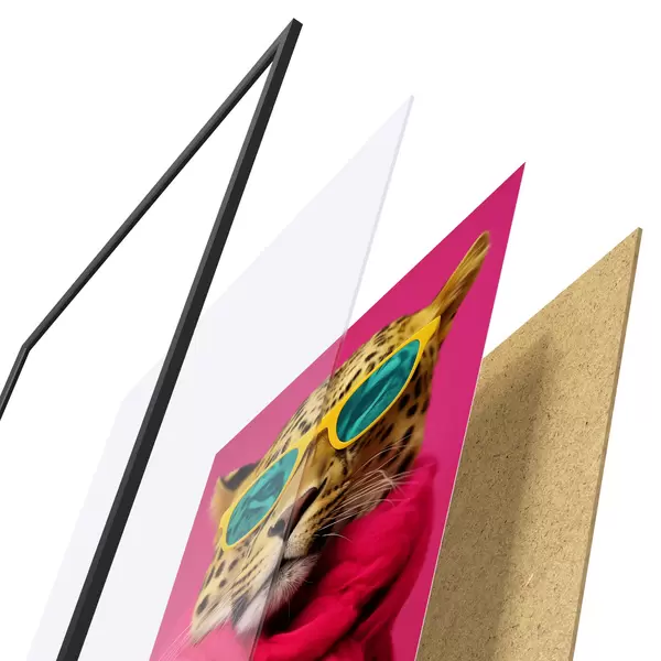 Le poster se compose d'un cadre, d'un plexiglas, d'une image imprimée et d'un support en aggloméré. Le poster peut être immédiatement accroché au mur grâce aux fixations au dos.