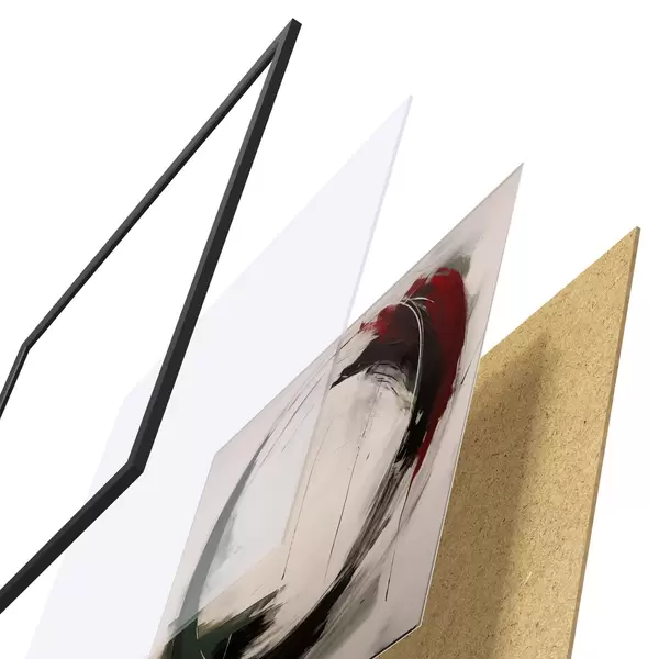 Le poster se compose d'un cadre, d'un plexiglas, d'une image imprimée et d'un support en aggloméré. Le poster peut être immédiatement accroché au mur grâce aux fixations au dos.