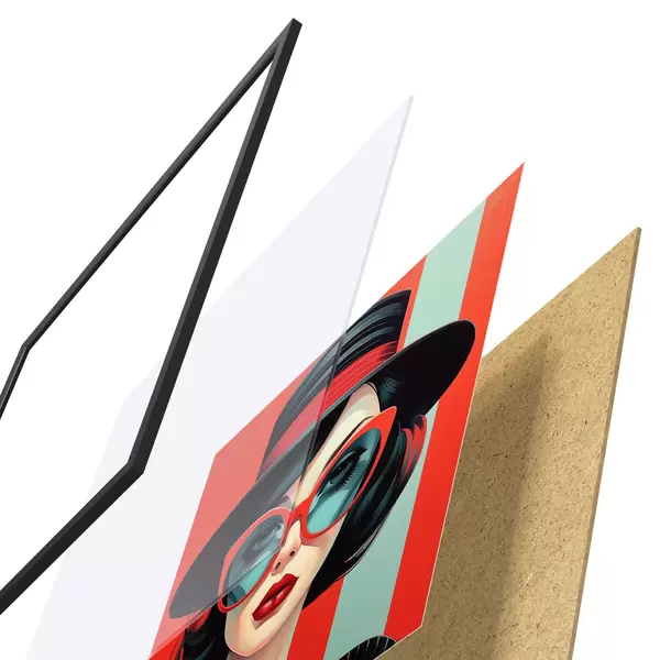 Le poster se compose d'un cadre, d'un plexiglas, d'une image imprimée et d'un support en aggloméré. Le poster peut être immédiatement accroché au mur grâce aux fixations au dos.