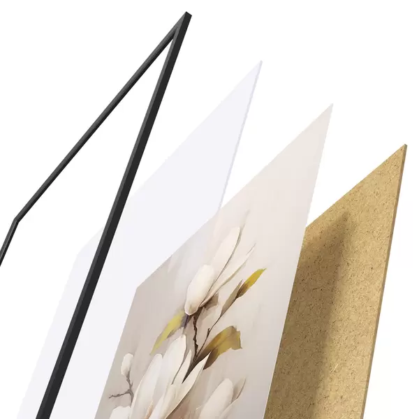 Le poster se compose d'un cadre, d'un plexiglas, d'une image imprimée et d'un support en aggloméré. Le poster peut être immédiatement accroché au mur grâce aux fixations au dos.