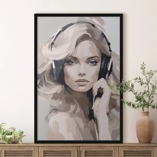 Affiche Portrait d'une fille avec des écouteurs f47410