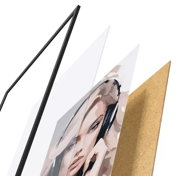 Le poster se compose d'un cadre, d'un plexiglas, d'une image imprimée et d'un support en aggloméré. Le poster peut être immédiatement accroché au mur grâce aux fixations au dos.
