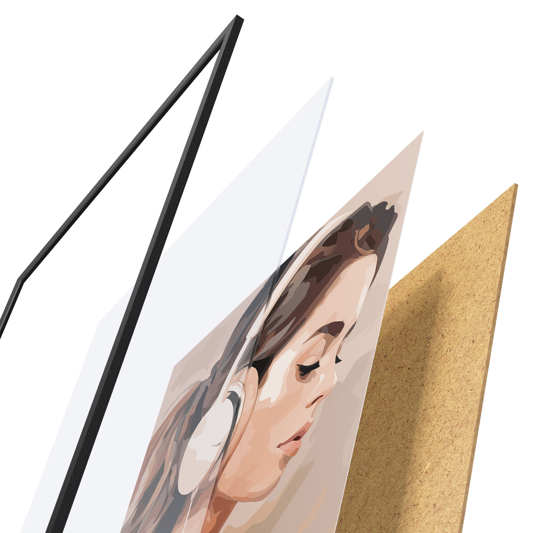 Le poster se compose d'un cadre, d'un plexiglas, d'une image imprimée et d'un support en aggloméré. Le poster peut être immédiatement accroché au mur grâce aux fixations au dos.