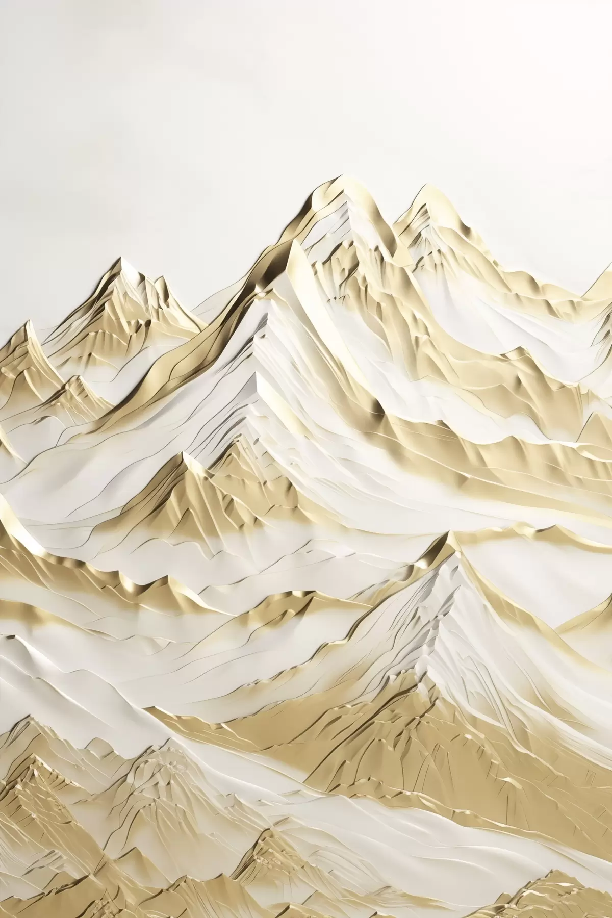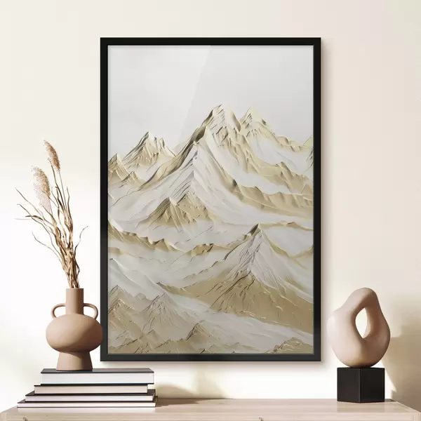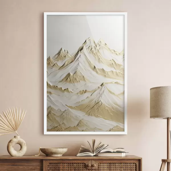 Affiche Un paysage de montagnes jaunes enneigées aux pics acérés et aux vallées profondes sous un ciel clair. f47420