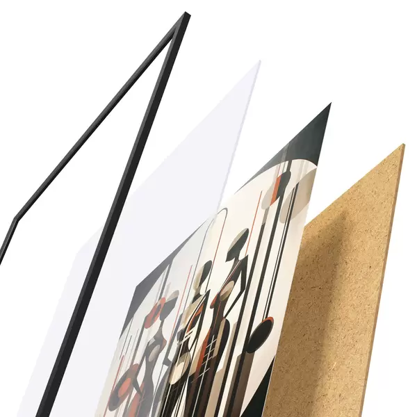 Le poster se compose d'un cadre, d'un plexiglas, d'une image imprimée et d'un support en aggloméré. Le poster peut être immédiatement accroché au mur grâce aux fixations au dos.