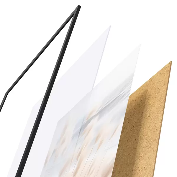 Le poster se compose d'un cadre, d'un plexiglas, d'une image imprimée et d'un support en aggloméré. Le poster peut être immédiatement accroché au mur grâce aux fixations au dos.
