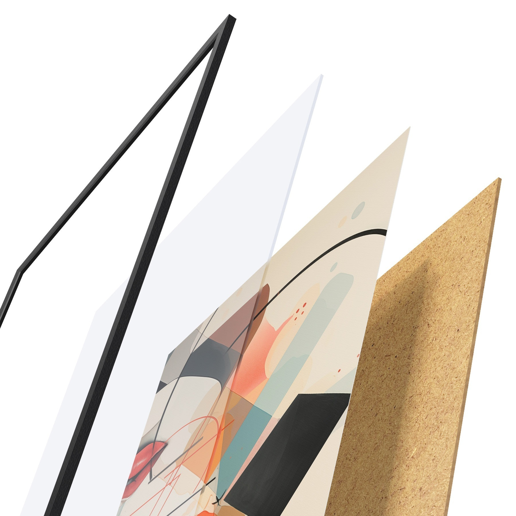 Le poster se compose d'un cadre, d'un plexiglas, d'une image imprimée et d'un support en aggloméré. Le poster peut être immédiatement accroché au mur grâce aux fixations au dos.