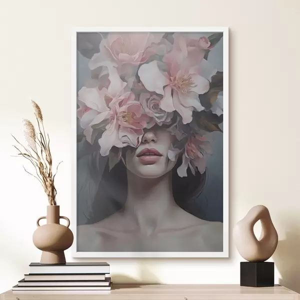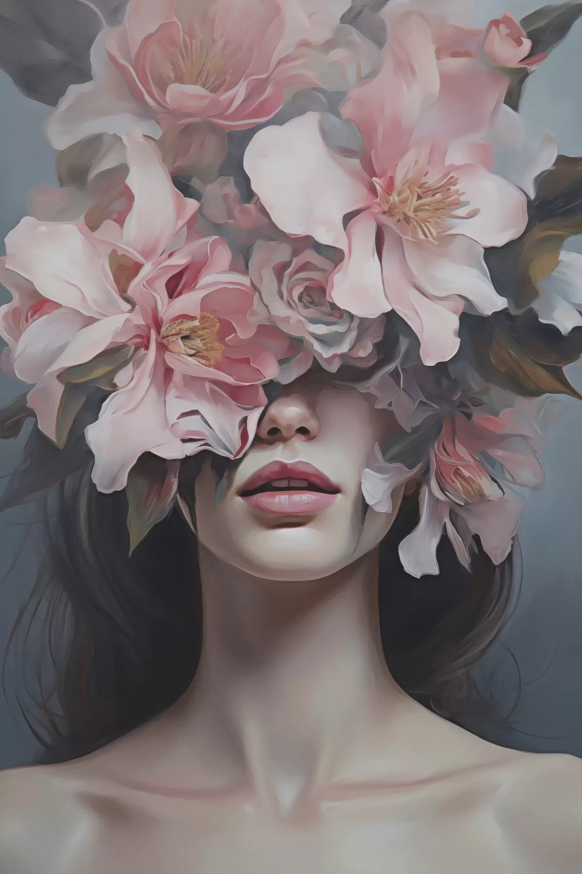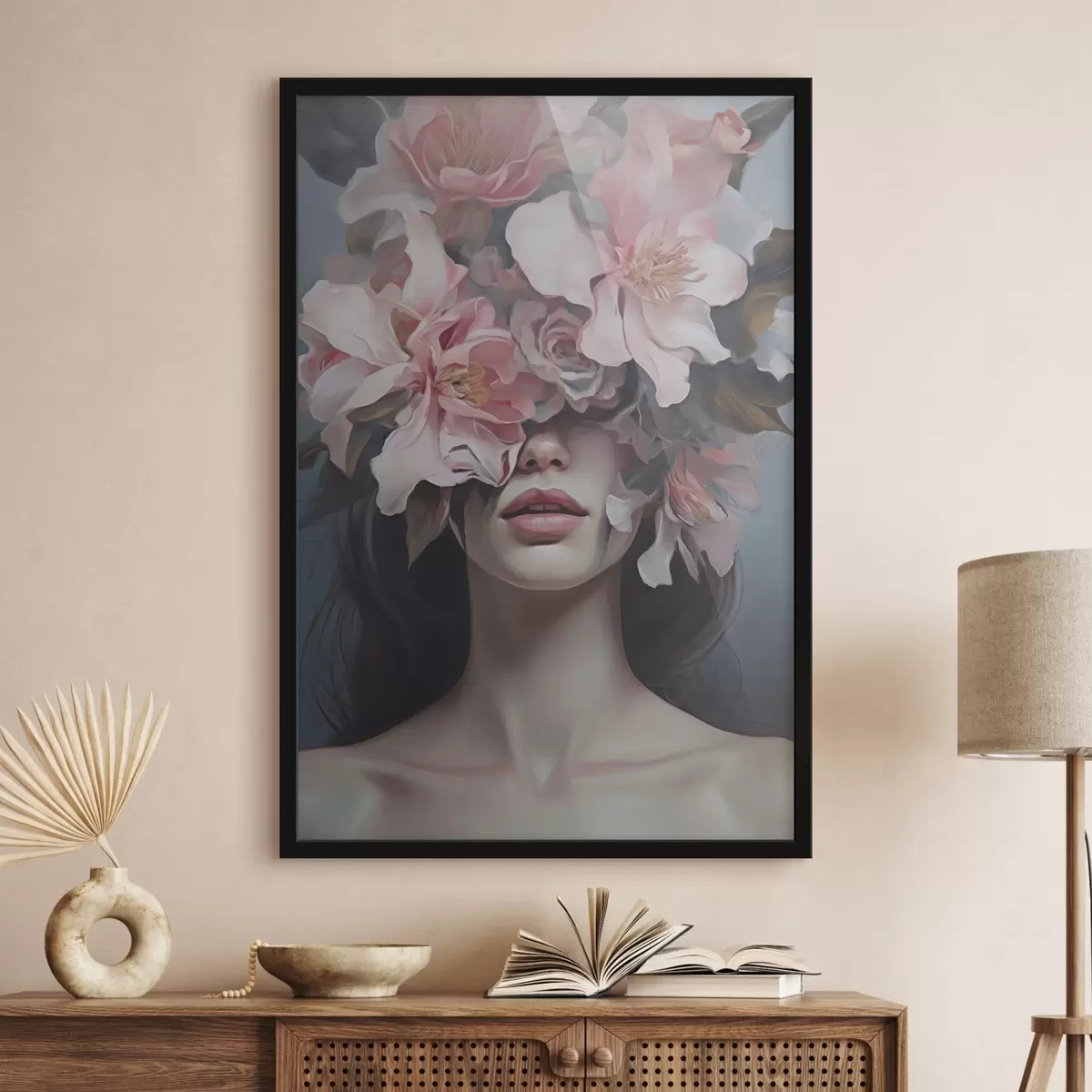 Affiche Portrait surréaliste d'une femme avec des fleurs Non f47489