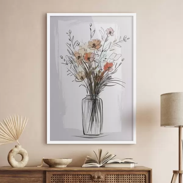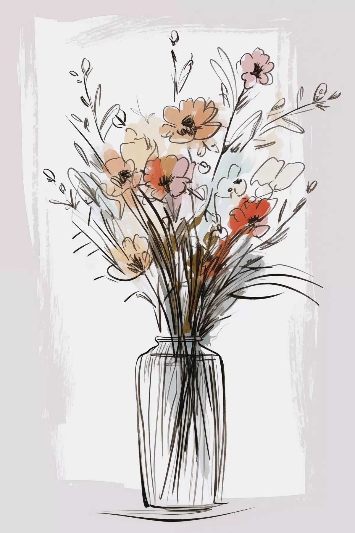 Affiche Fleurs dans un vase imitation d'un dessin Non f47495