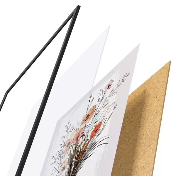 Le poster se compose d'un cadre, d'un plexiglas, d'une image imprimée et d'un support en aggloméré. Le poster peut être immédiatement accroché au mur grâce aux fixations au dos.