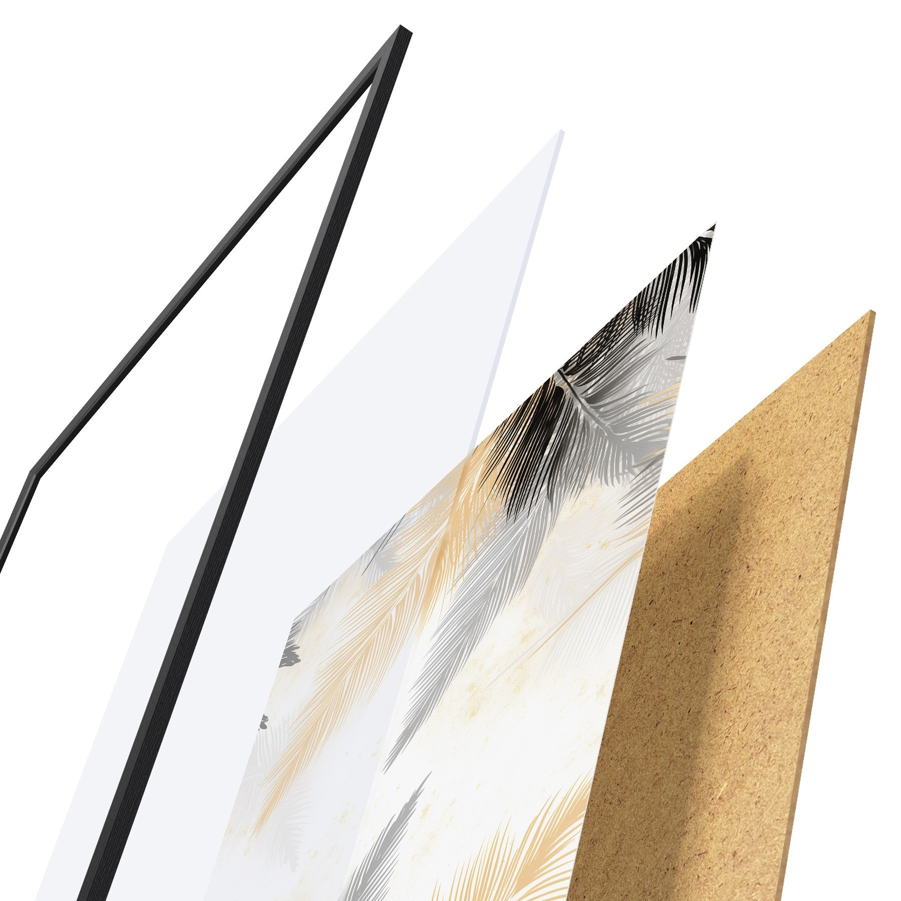 Le poster se compose d'un cadre, d'un plexiglas, d'une image imprimée et d'un support en aggloméré. Le poster peut être immédiatement accroché au mur grâce aux fixations au dos.