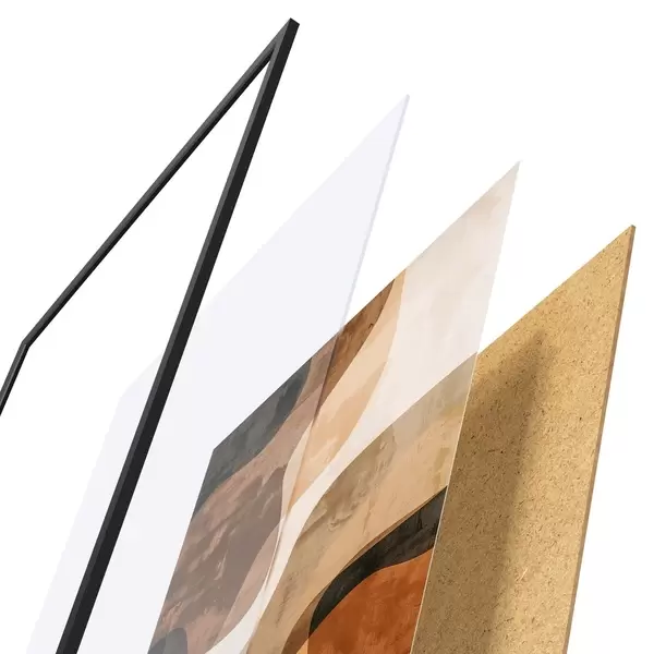 Le poster se compose d'un cadre, d'un plexiglas, d'une image imprimée et d'un support en aggloméré. Le poster peut être immédiatement accroché au mur grâce aux fixations au dos.