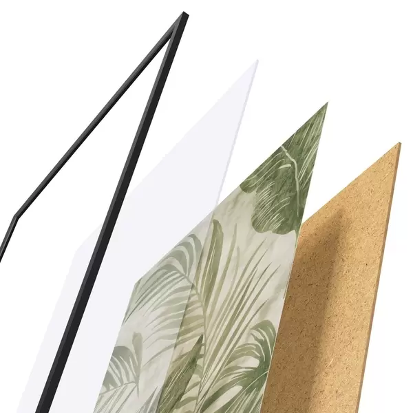 Le poster se compose d'un cadre, d'un plexiglas, d'une image imprimée et d'un support en aggloméré. Le poster peut être immédiatement accroché au mur grâce aux fixations au dos.