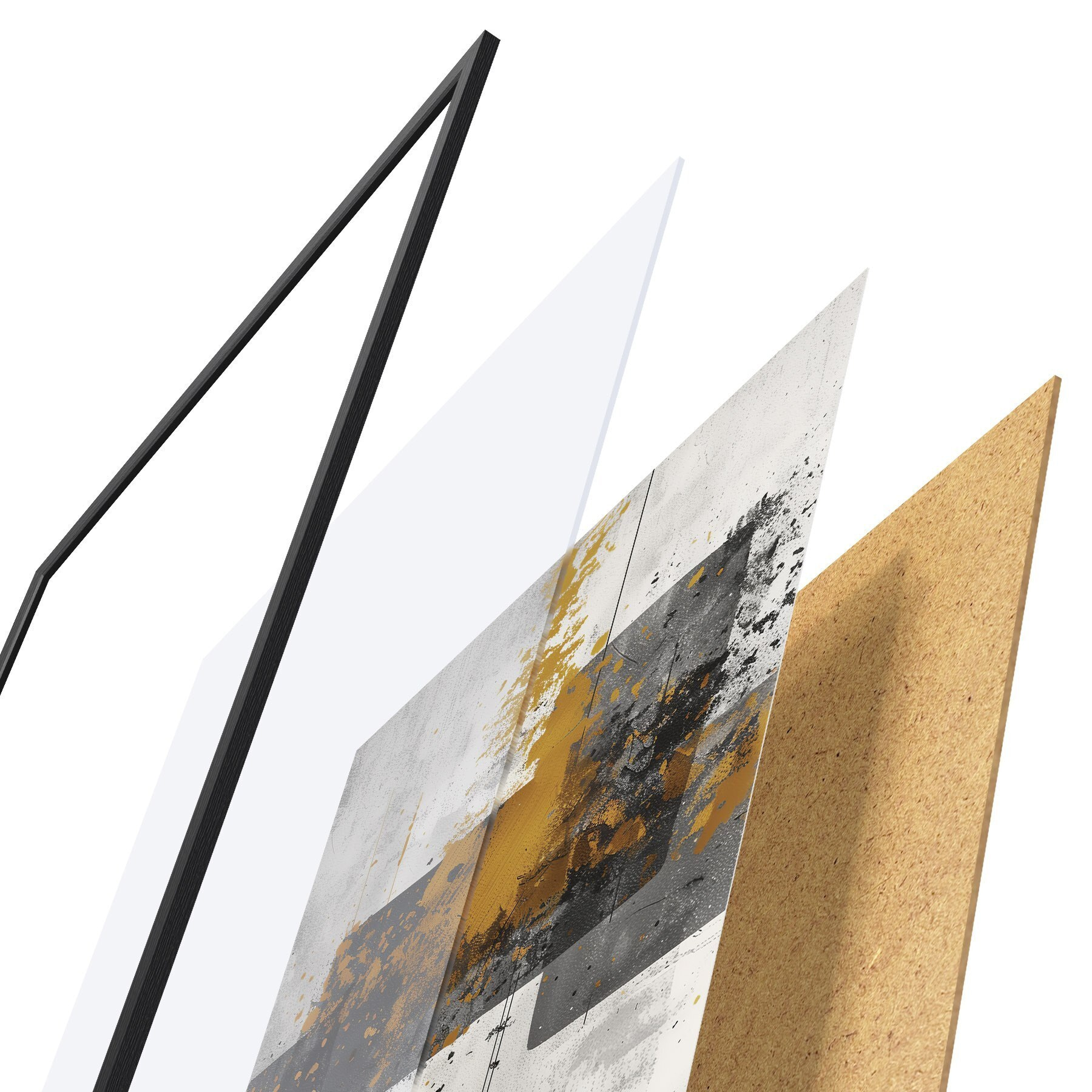 Le poster se compose d'un cadre, d'un plexiglas, d'une image imprimée et d'un support en aggloméré. Le poster peut être immédiatement accroché au mur grâce aux fixations au dos.