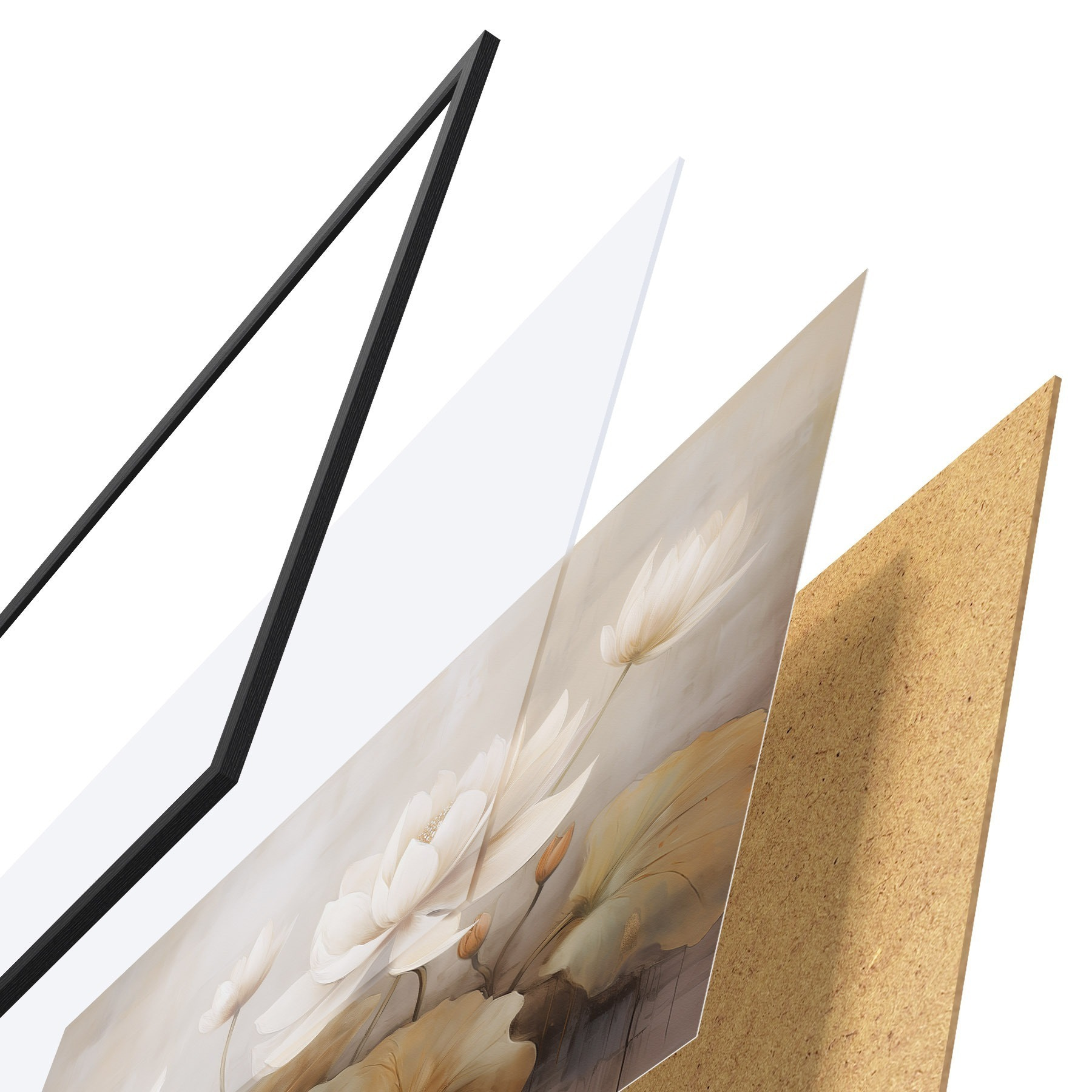 Le poster se compose d'un cadre, d'un plexiglas, d'une image imprimée et d'un support en aggloméré. Le poster peut être immédiatement accroché au mur grâce aux fixations au dos.