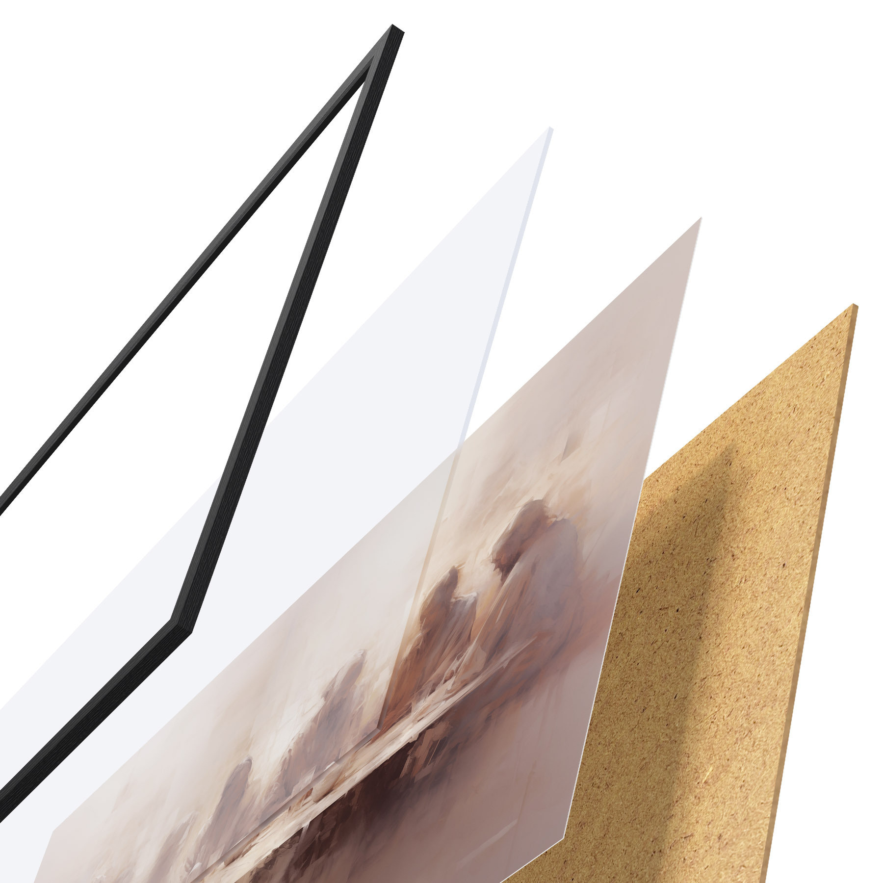 Le poster se compose d'un cadre, d'un plexiglas, d'une image imprimée et d'un support en aggloméré. Le poster peut être immédiatement accroché au mur grâce aux fixations au dos.