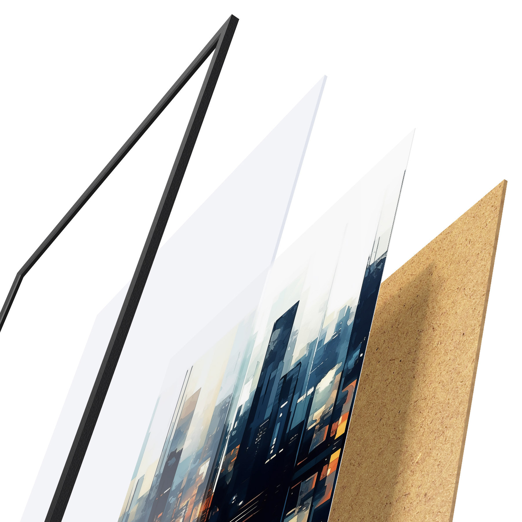 Le poster se compose d'un cadre, d'un plexiglas, d'une image imprimée et d'un support en aggloméré. Le poster peut être immédiatement accroché au mur grâce aux fixations au dos.