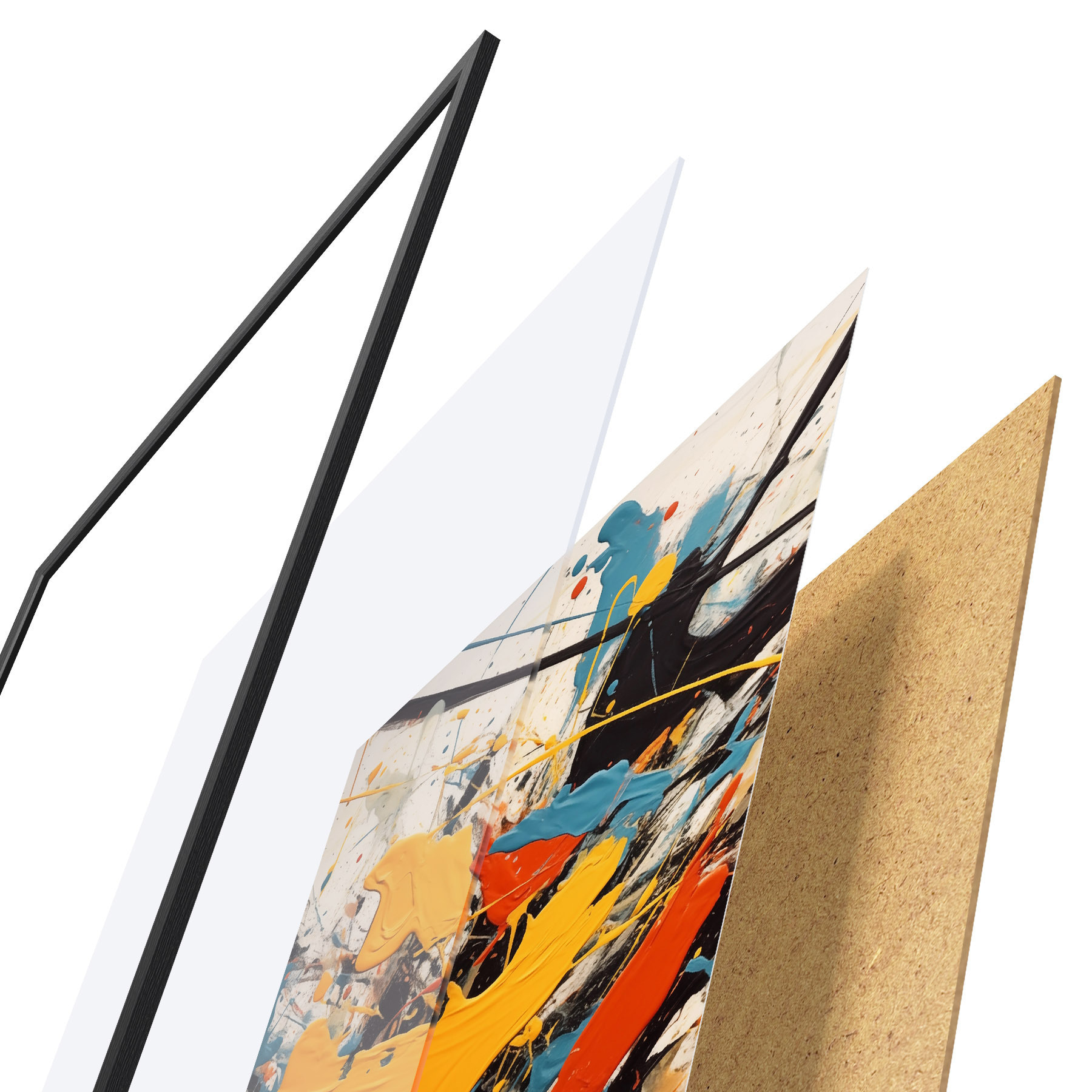 Le poster se compose d'un cadre, d'un plexiglas, d'une image imprimée et d'un support en aggloméré. Le poster peut être immédiatement accroché au mur grâce aux fixations au dos.