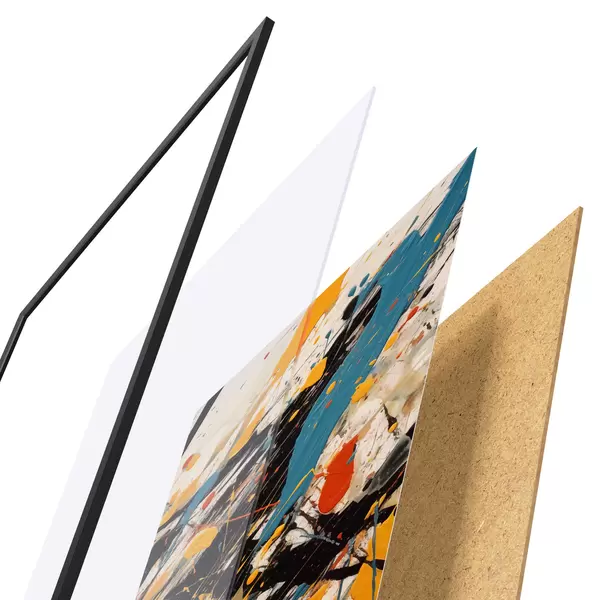 Le poster se compose d'un cadre, d'un plexiglas, d'une image imprimée et d'un support en aggloméré. Le poster peut être immédiatement accroché au mur grâce aux fixations au dos.